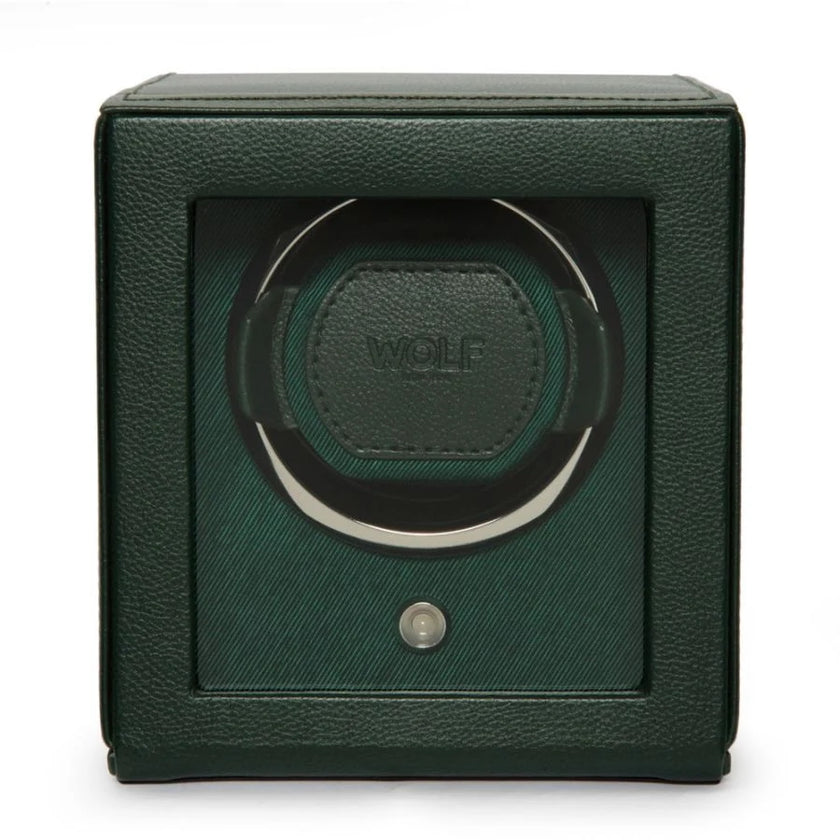 WOLF Cub Collection watch winder with cover and lock-in cuff, green