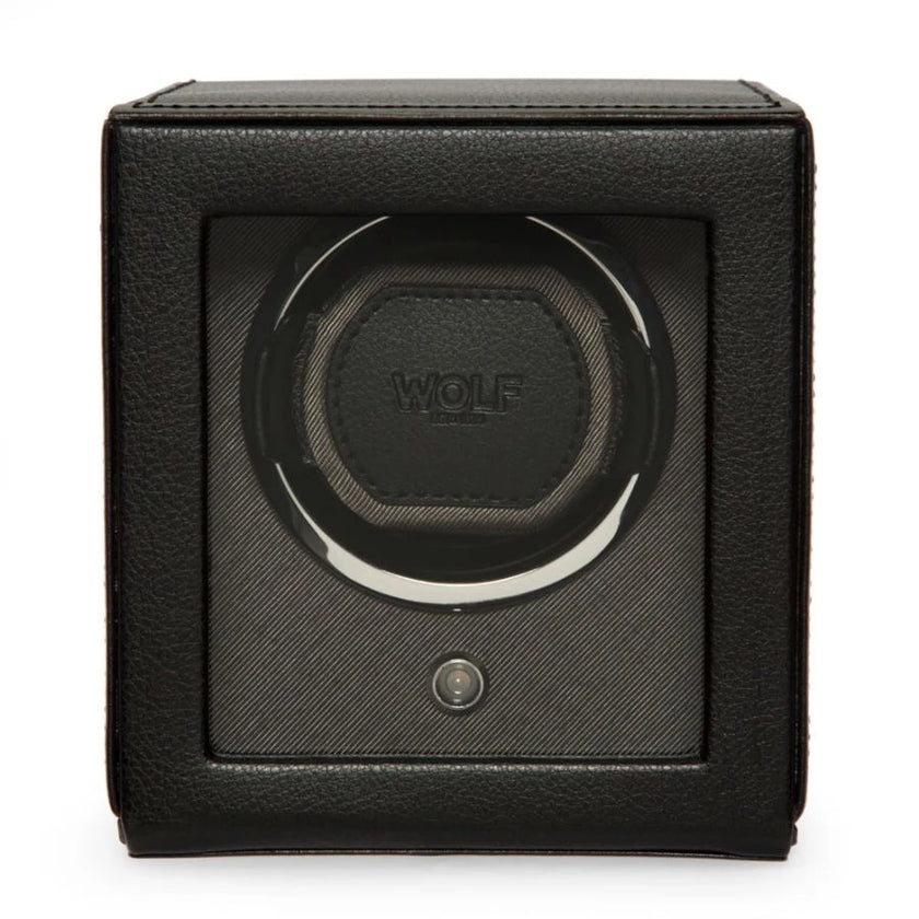WOLF Cub Collection watch winder with cover and lock-in cuff, black