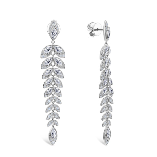 18KT white gold leaf chandelier earrings with 5.60ctw marqui...