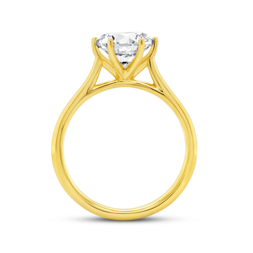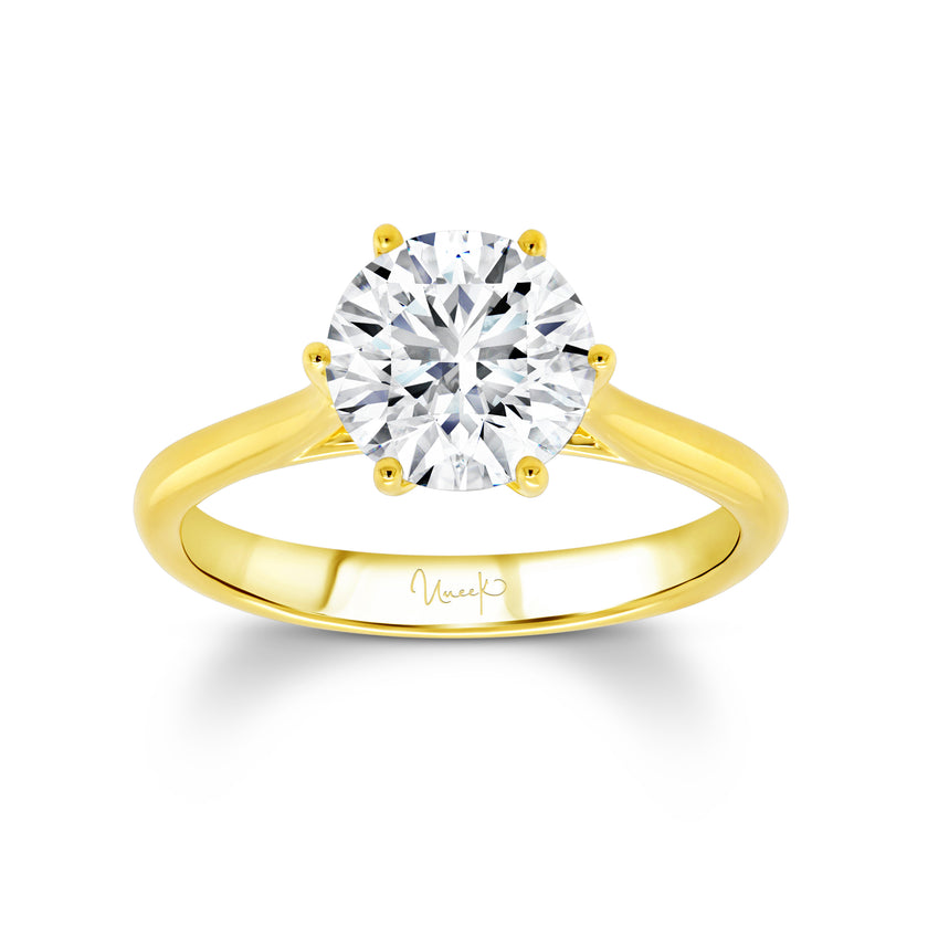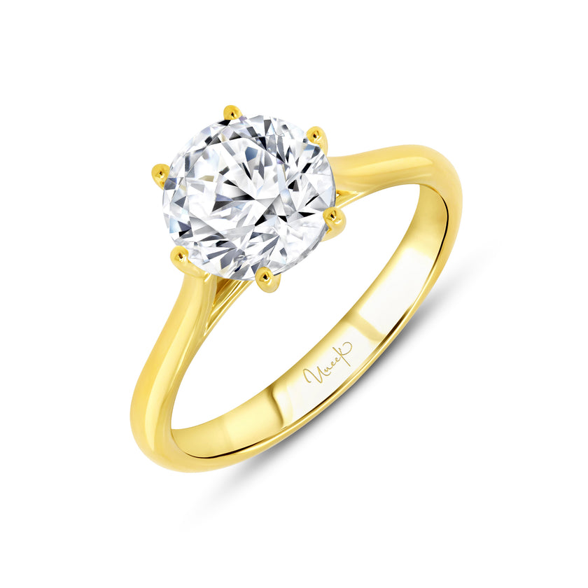 18KT yellow gold vintage style, six prong solitaire engagement ring