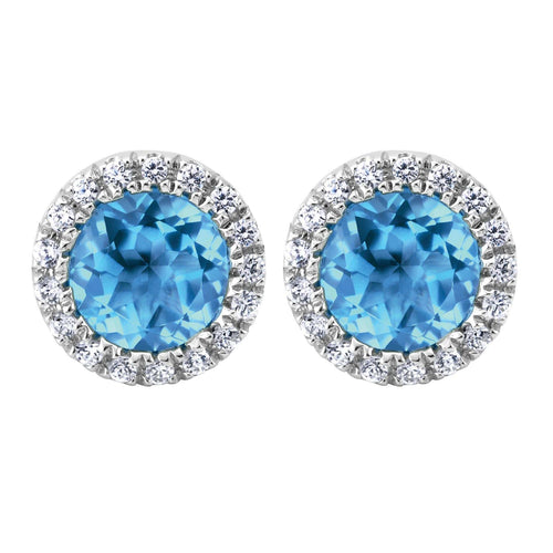 14KT white gold earrings with 1.20ctw round Swiss blue topaz...