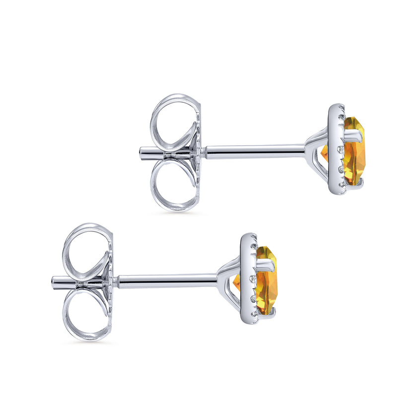 14K White Gold Round Halo Citrine and Diamond Stud Earring, ...