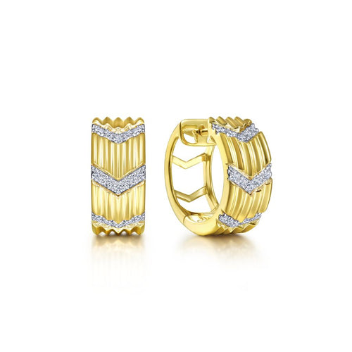 14K Yellow Gold Wide 15mm Chevron Diamond Station Huggie Ear...