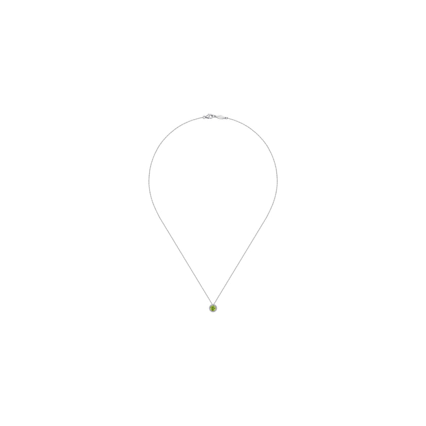14K White Gold Peridot and Diamond Halo Pendant Necklace, 0.07ctw H/I-SI, 0.48ctw Peridot