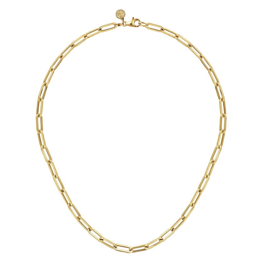 14KT yellow gold hollow paperclip necklace, 17 inches