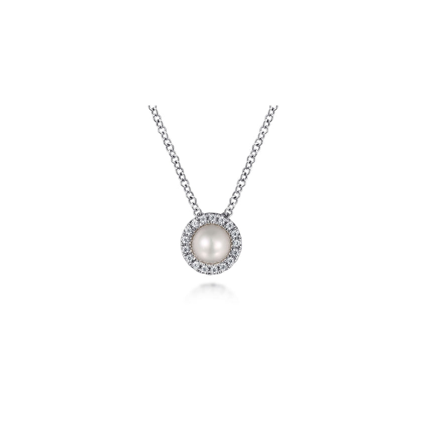 14K White Gold Pearl and Diamond Halo Pendant Necklace, 0.06ctw H/I-SI, 18 Inch