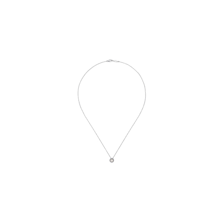 14K White Gold Pearl and Diamond Halo Pendant Necklace, 0.06...