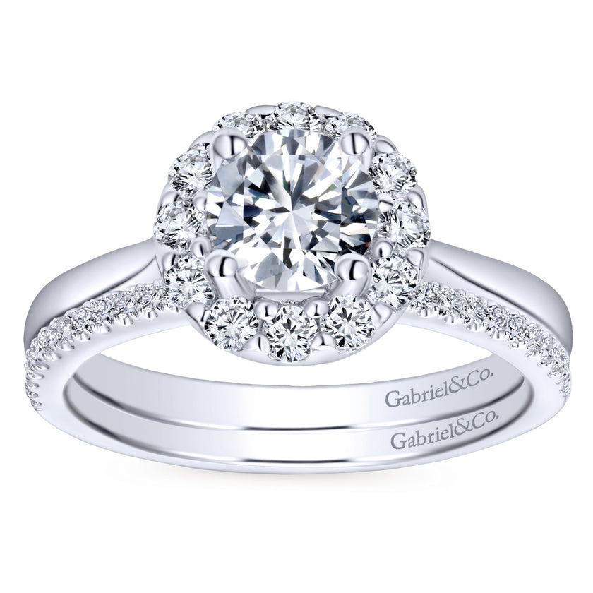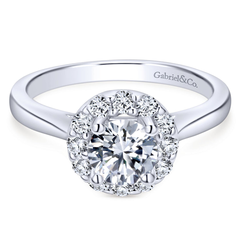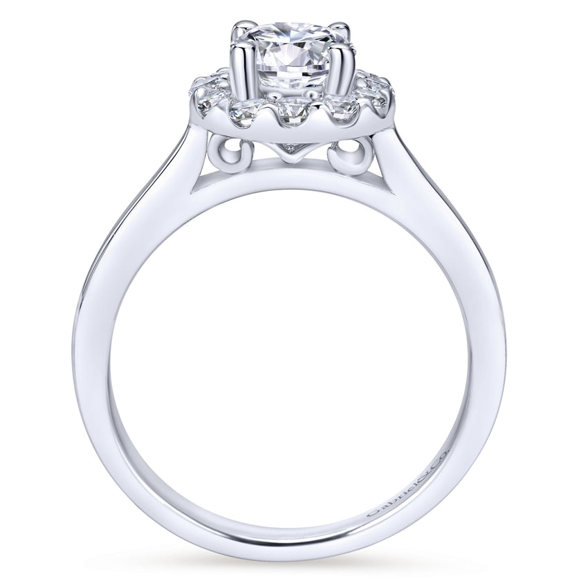 14KT white gold semi-mount with 0.33ctw round diamonds, G/H-SI, set in a halo.