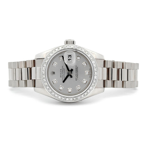 Rolex DateJust, President, 18KT White Gold, Silver Diamond Dial, Diamond Bezel, 26mm