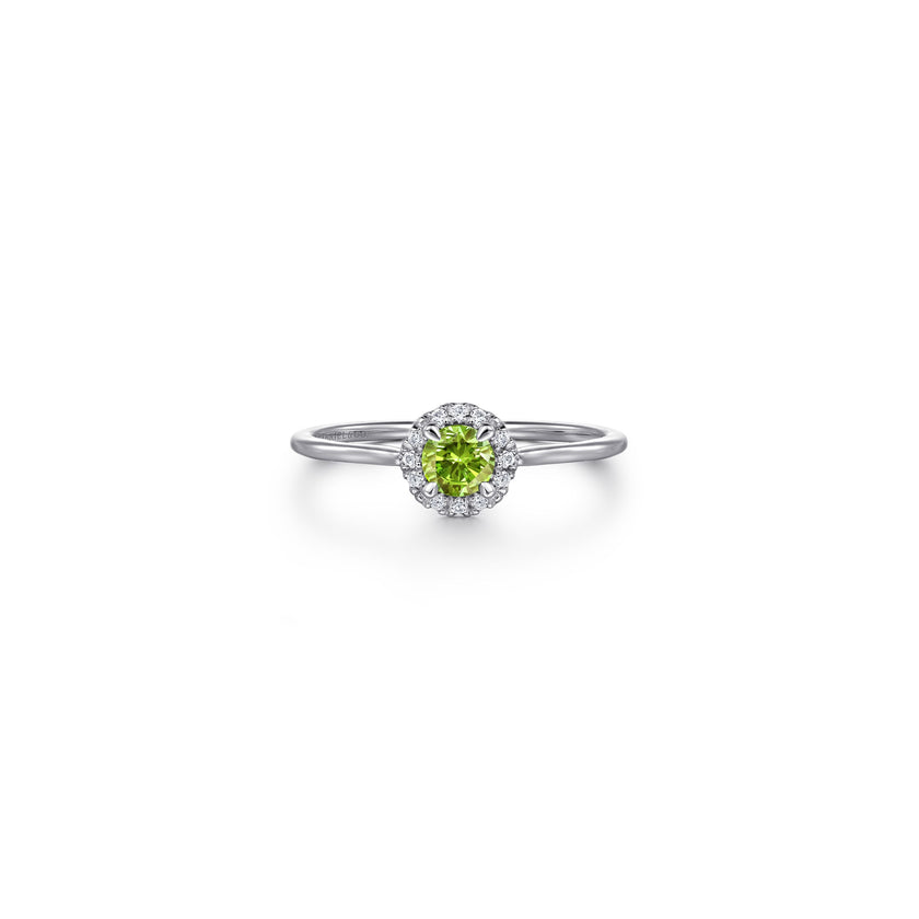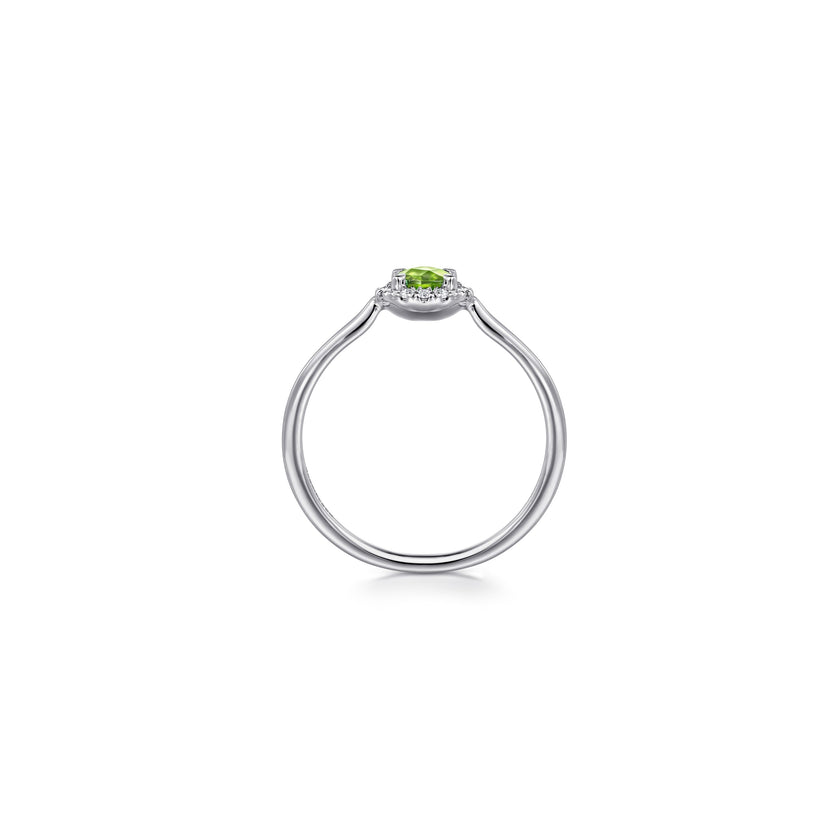 14K White Gold Peridot and Diamond Halo Promise Ring, 0.06ctw H/I-SI, 0.31ctw Peridot