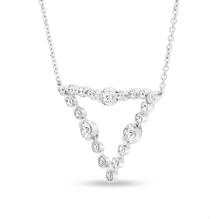 14KT white gold necklace with 0.63ctw round diamonds, G/H-VS2/SI1 (20 qty) set in a triangle design, 19.5 inch adjustable